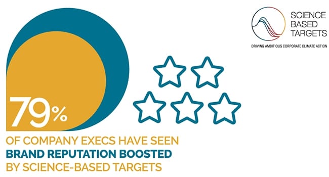Indeed, 79% of corporate executives surveyed found a strengthened brand reputation to be one of the most significant business benefits for their company from committing to the Science Based Targets initiative.