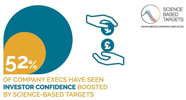It’s not only customers that use sustainability as a benchmark of business credibility. Investors are increasingly taking interest in businesses’ environmental policies, as they look to shore up their investments for the future. Indeed, some 52% of execs say their science-based target commitment has boosted investor confidence in their business.