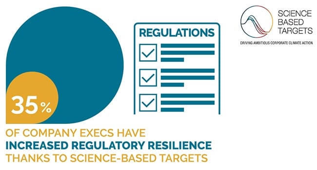 Over a third (35%) of executives we surveyed report that setting science-based targets offered them increased resilience against upcoming regulation as more and more businesses see the benefits of future-proofing their business models and aligning themselves with the Paris Agreement early.